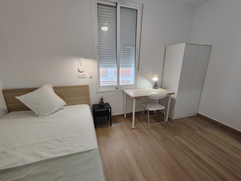 La vivienda cuenta con 5 habitaciones, todas ellas equipadas con cama de matrimonio (1,35), armario, mesa y silla de estudio, flexo y calefactor, disponen todas de baño dentro de la habitación y ventana al exterior.